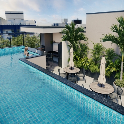 Lazer completo, 100% mobiliado e equipado: piscina por torre, sauna seca, salão de jogos, espaço kids, surf box, academia, SPA, coworking, mini market, pet bar e vaga para carro elétrico.